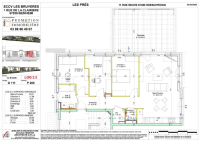 Nos logements sont équipés d’un chauffage au sol par pompe à chaleur individuelle (PAC), d’une isolation extérieure, de revêtements de sols en carrelage pour les pièces de vie et la salle de bains et de parquet stratifié dans les chambres à coucher. Les revêtements seront à choisir dans la gamme proposée par le promoteur. Les salles de bains seront entièrement carrelées et équipées d’une douche ou d’une baignoire ainsi qu’un meuble avec miroir et applique.